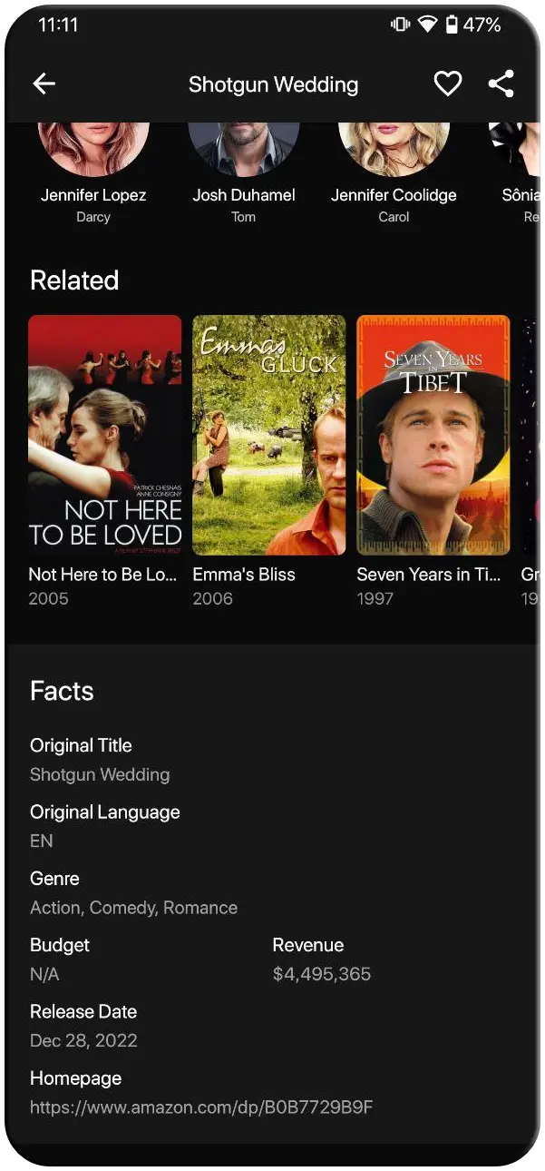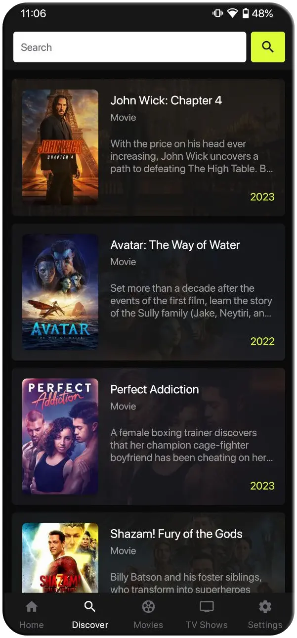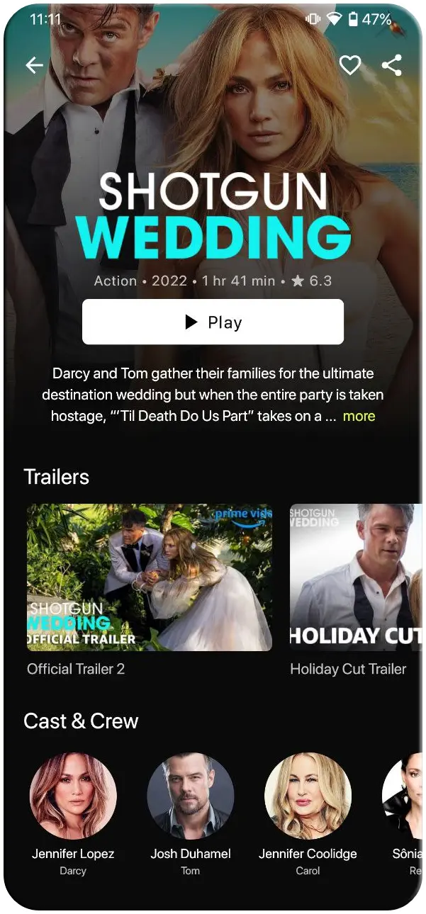 TMDB Data Integration: The app's movie data is sourced from TMDB, ensuring accuracy and relevant information about each title. This integration enhances the overall user experience by providing insightful details and synopsis for better decision-making.