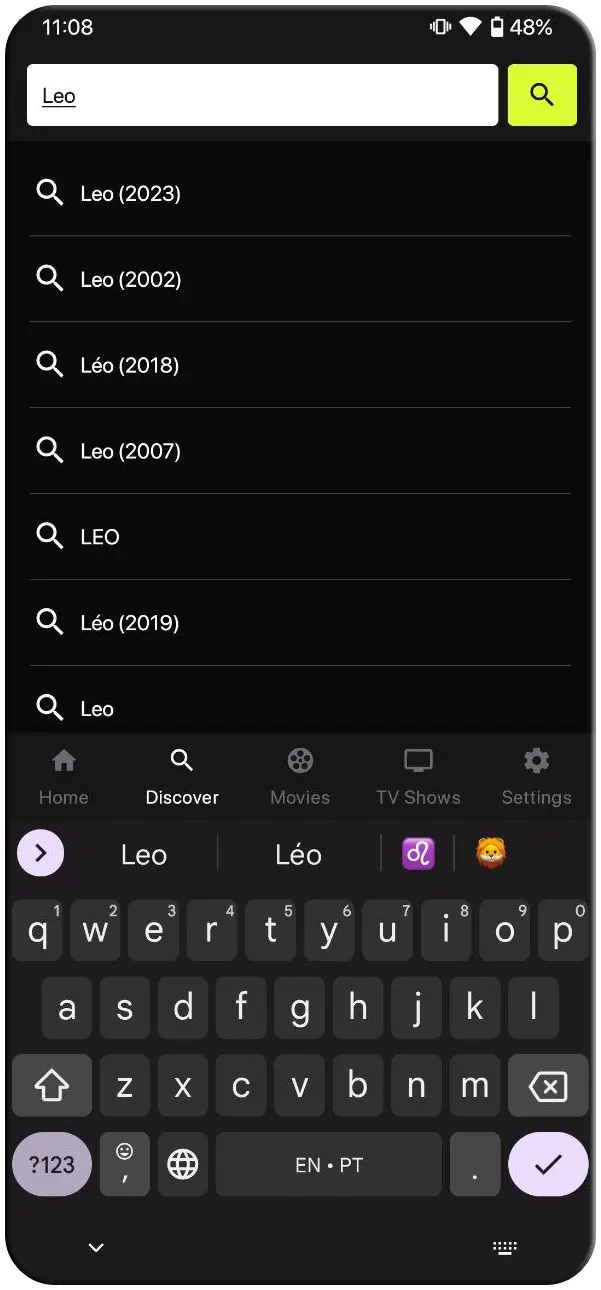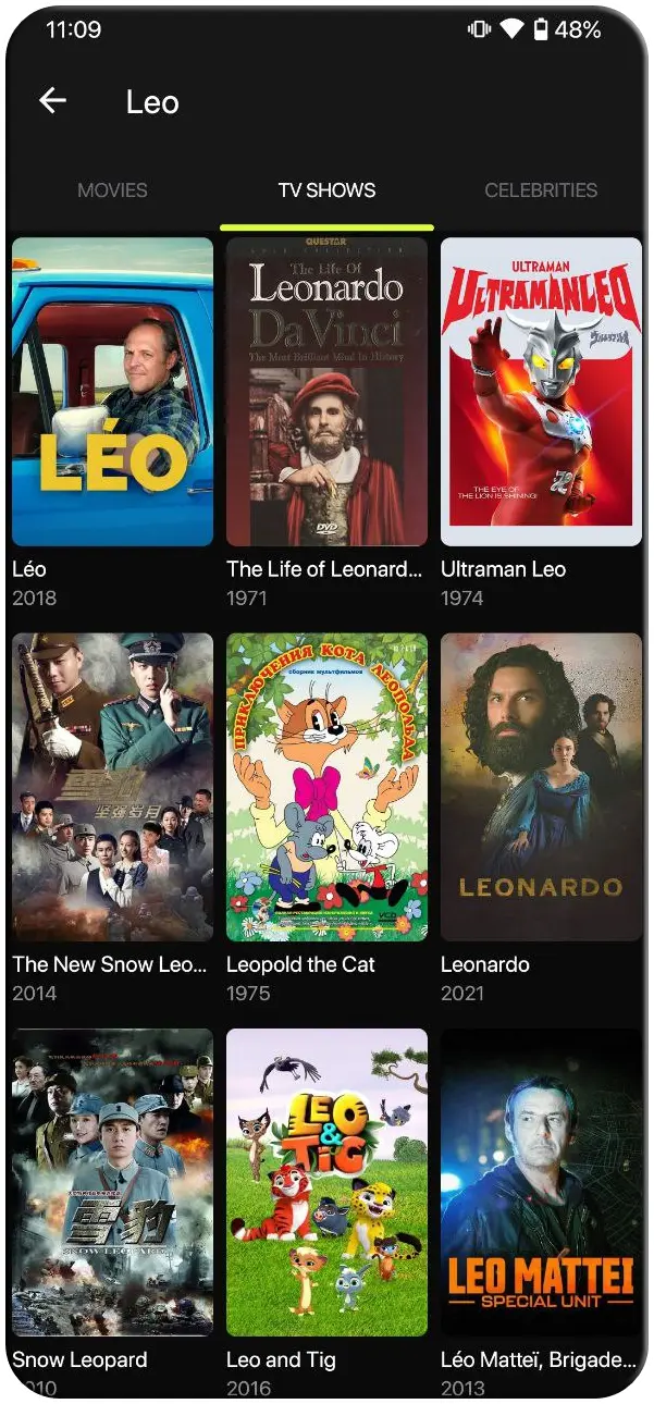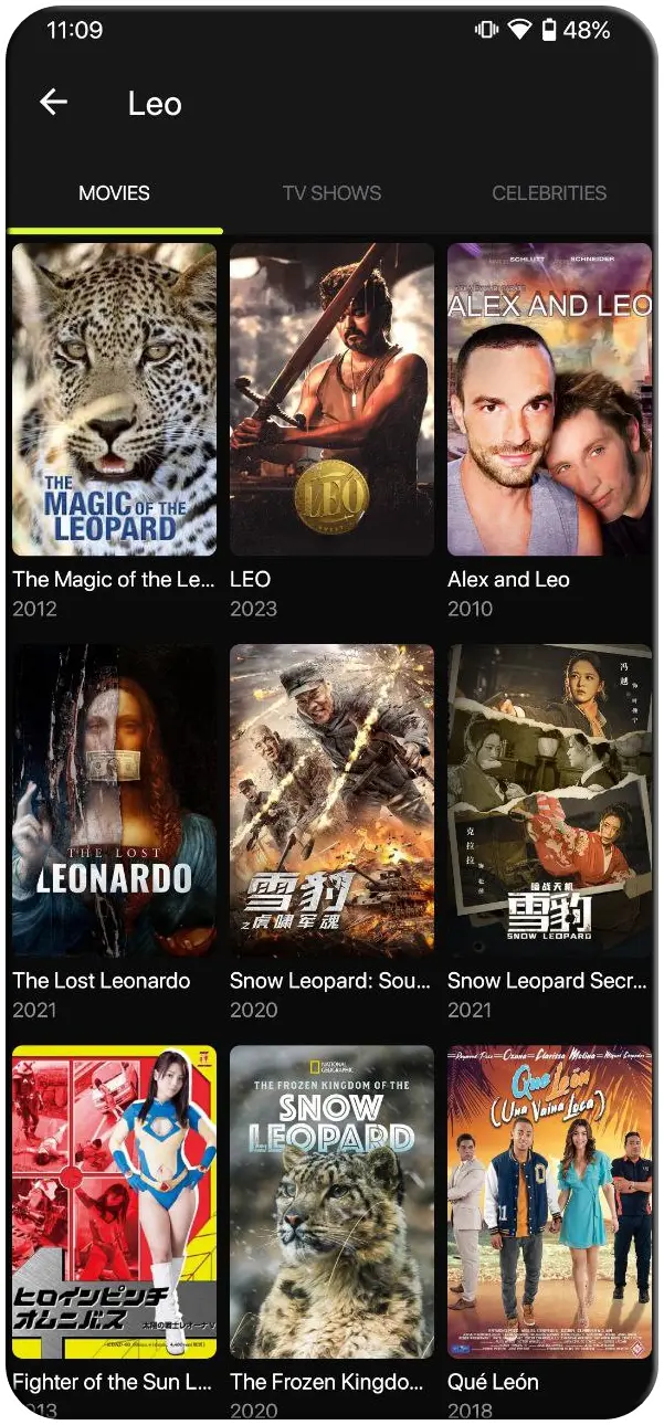 Search your favourite movies and tv series instanly and get results for every movies or tv show you search.